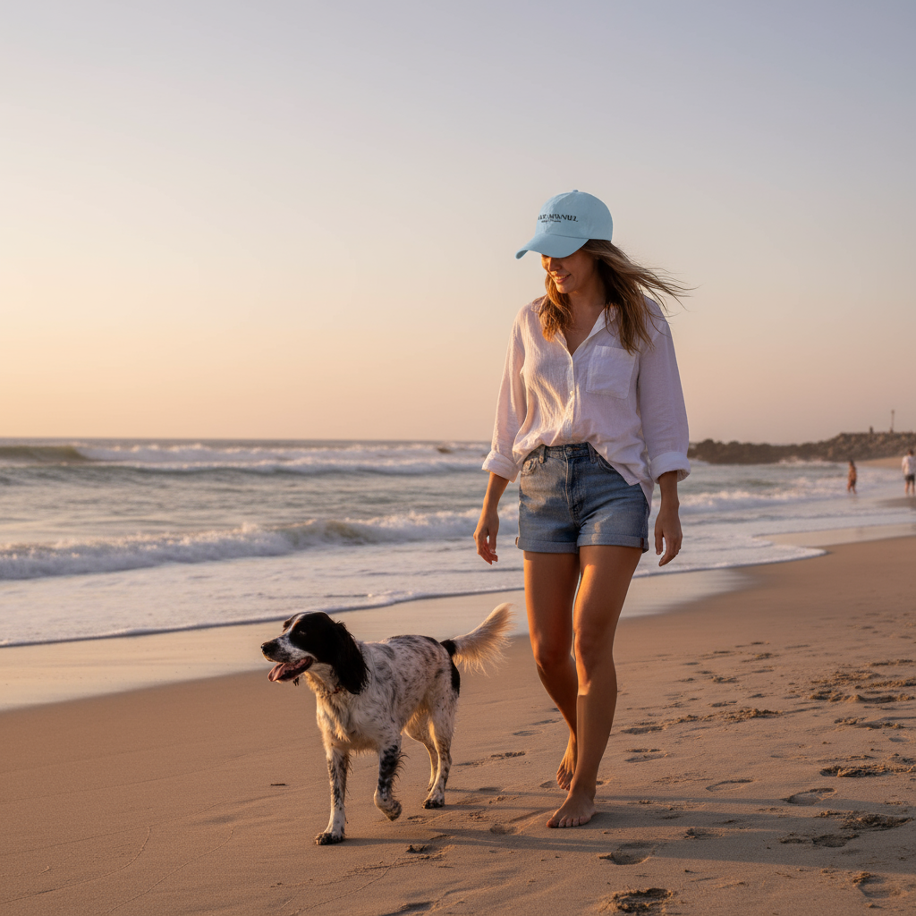 For those who find their peace where the tide meets the shore. The Salt + Spaniel Coordinates Cap is more than a hat — it’s a love letter to San Diego’s iconic Fiesta Island dog park on the beach, embroidered in timeless black thread with the coordinates 32.7736 -117.2237 as a quiet tribute to salt air, sea spray, and golden-hour walks with your favorite companion.